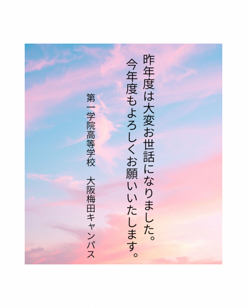 【大阪梅田キャンパス通信】~2026年度もよろしくお願いいたします。~こんにちは!第一学院高校大阪梅田キャンパスです昨年度は本校の教育活動に多大なるご支援を賜り、心より御礼申し上げます。 本年度も地域の皆様や保護者の皆様のお力添えをいただきながら、より良い教育活動の充実に努めてまいります。何卒よろしくお願い申し上げ... -