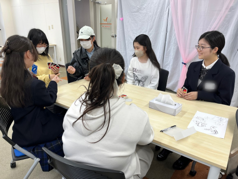 どんな先輩がいるのかな!?新入生×先輩で交流したよ! カードゲームで大盛り上がり♪ どんな先輩がいるか緊張していたけど… 中学校の時は別室登校だったよ、という人や、 同じ気持ちを経験した人も多くて安心できたようです(*^^*) -