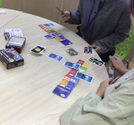 - カフェのような空間で、一人一人が自分に合ったレベルから勉強中