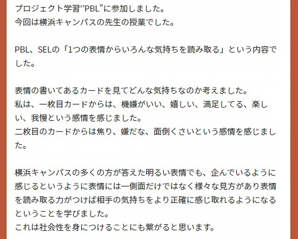「表情を読み取る力がつけば、相手の気持ちをより正確に感じ取れるようになる」という気づきがあったようです。