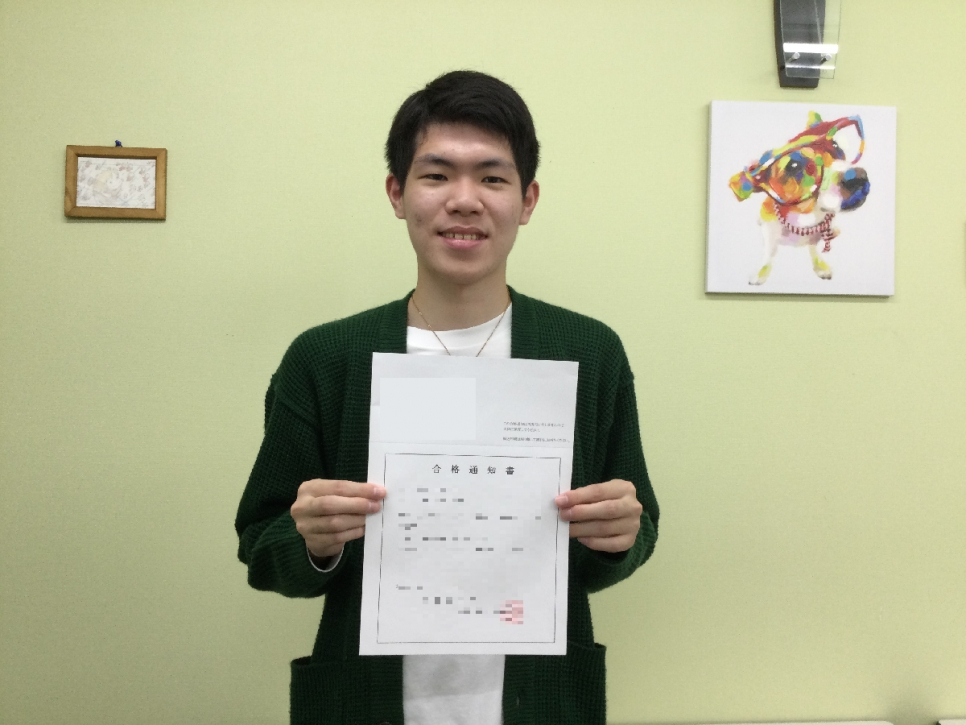 総合型選抜試験を受験するにあたって、志望理由書やプレゼン資料づくりから、色々と大変ではありましたが、先生方のサポートもありながら、合格を勝ち取ることができましたヽ(^o^)丿