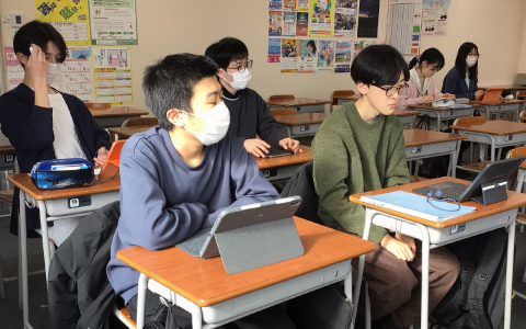 【学び合い】お互いに高め合う仲間生徒達は学習する中で「学び合い」も大事にしています。英語や数学、公共など、分からない所を聞いたり、教えてもらったり、お互いに高め合う仲間です(^^)/ -