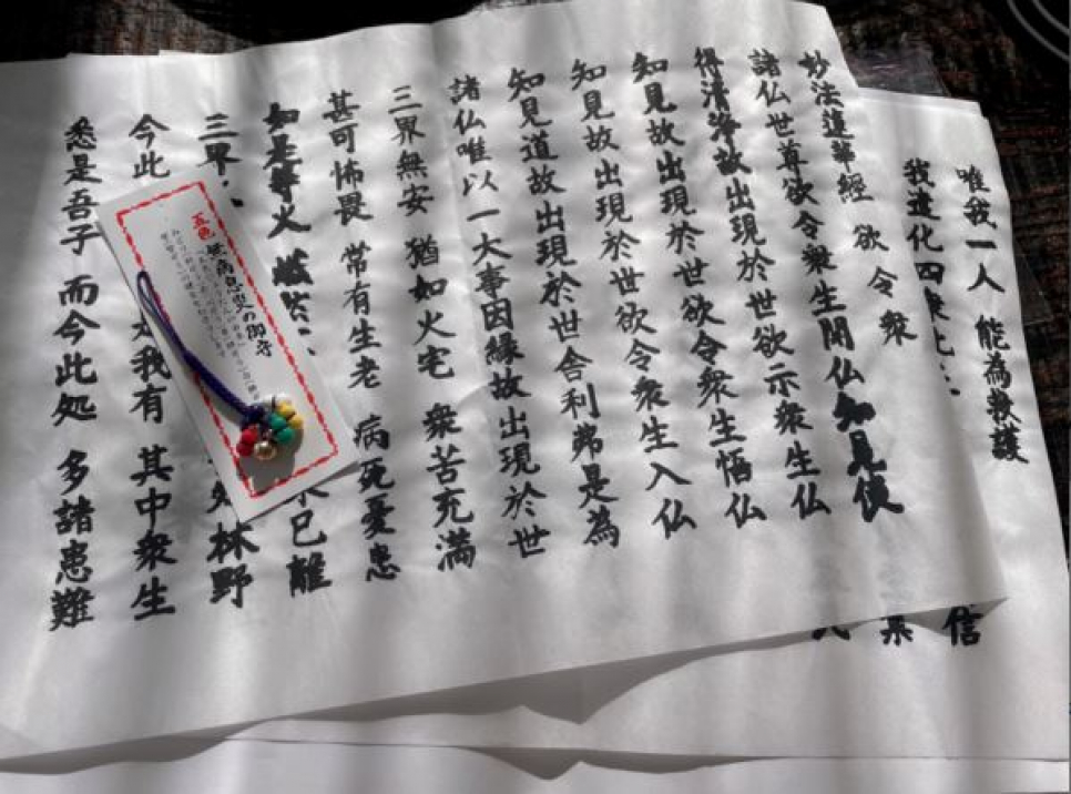 お坊さんは一文字書くごとに三礼(地面に頭と手、膝をつける)していると聞いて、修行の大変さ、集中力にびっくりしました。