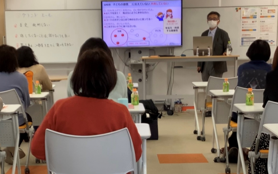 講座では、子どもの心の状況や気持ちに寄り添った言葉のキャッチボールのコツを、実際にお隣同士で会話をしてみて学びました。