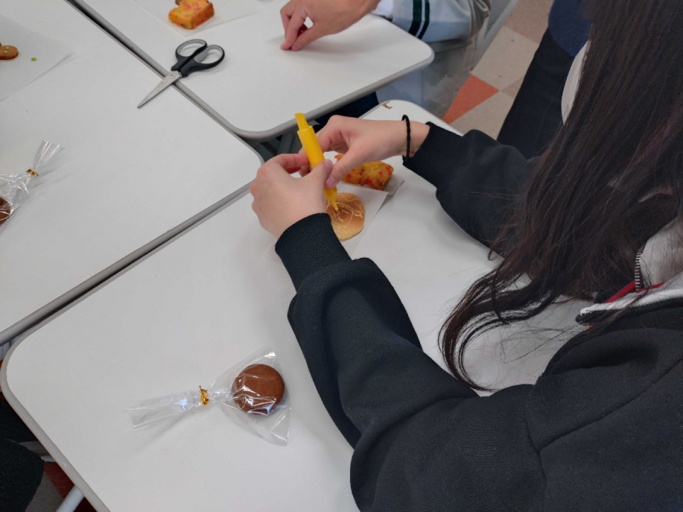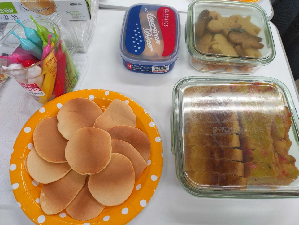 PBL×SELの一環として、手作りのクッキーやパンケーキもふるまわれ、各々かわいい顔をチョコペンでクッキーに描いてから食べました。