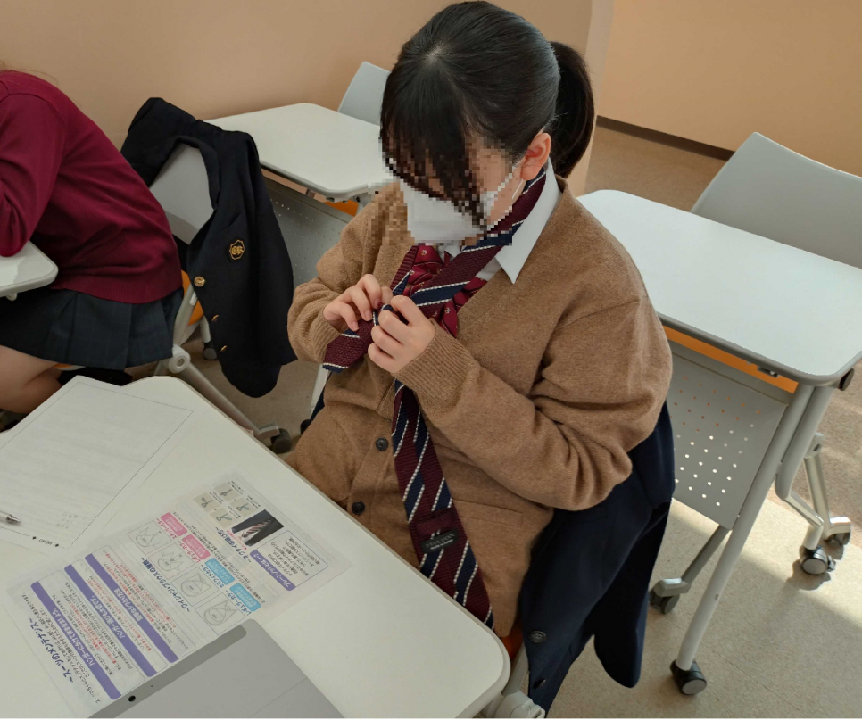 実際にネクタイをお借りして結び方を学ぶこともできました。
