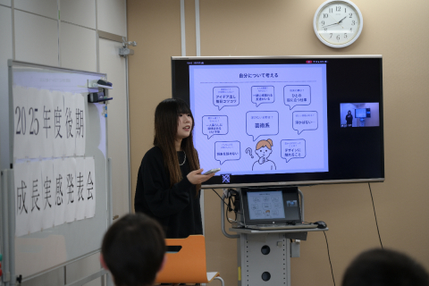 第一学院☆千葉キャンパス~【行事】後期成長実感発表会~「後期成長実感発表会」を開催しました。 本発表会は、生徒一人ひとりが後期に取り組んできた探究活動や進路活動の成果を振り返り、自身の成長を言葉にして伝えることを目的とした取り組みです。 発表内容は、進路活動の報告や将来に向けた取り組みの紹介、自分の「... -