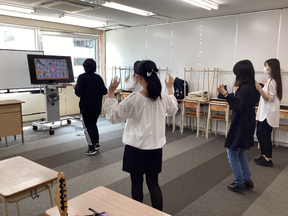 パフォーマンスサークルでは動画を見ながら実際にダンスをしたり、歌を歌ったりしました。