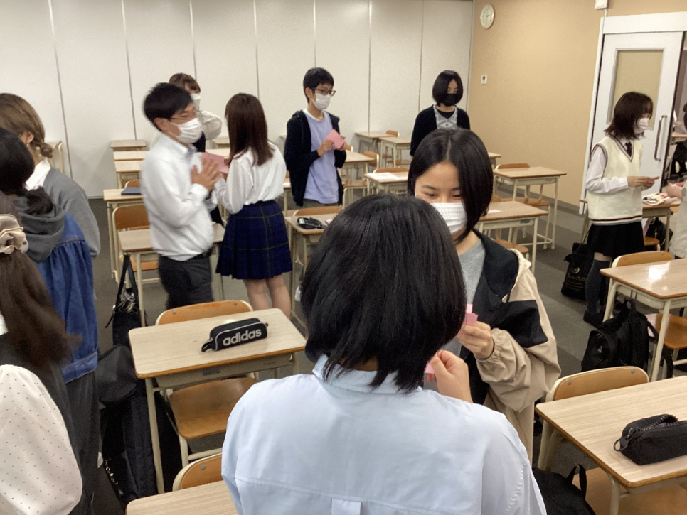 「居場所・仲間作り」のために「名刺交換タイム」を設けました。