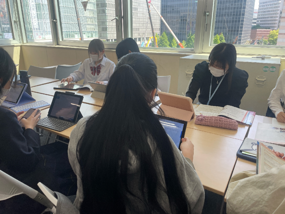お互いに教え合ったり、先生たちに聞きながらレポートを進めていきました。