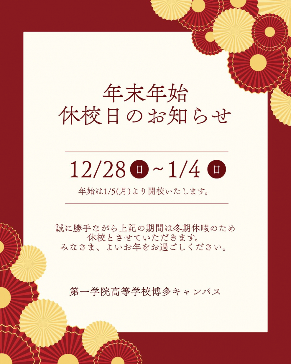 - 第一学院☆博多キャンパス~【休校のお知らせ】年末年始~!