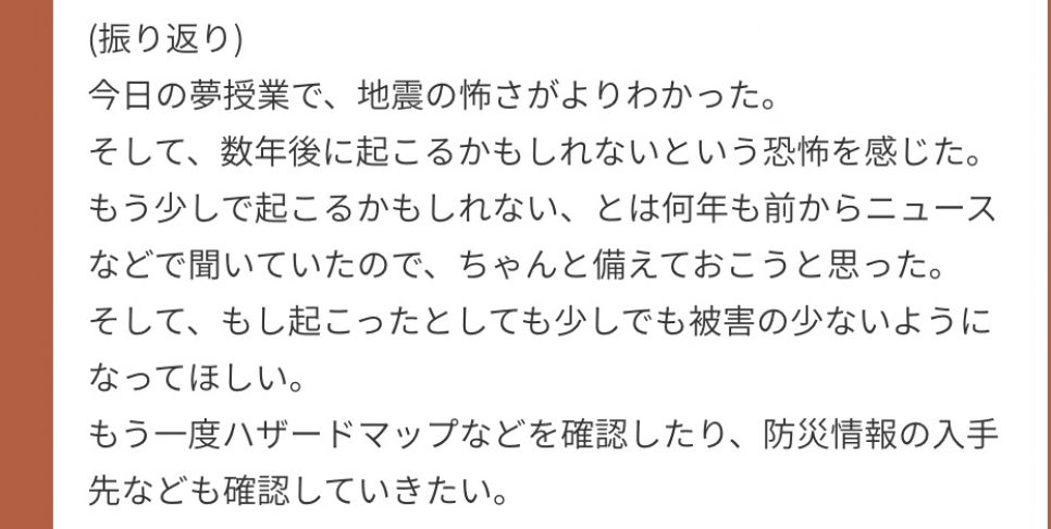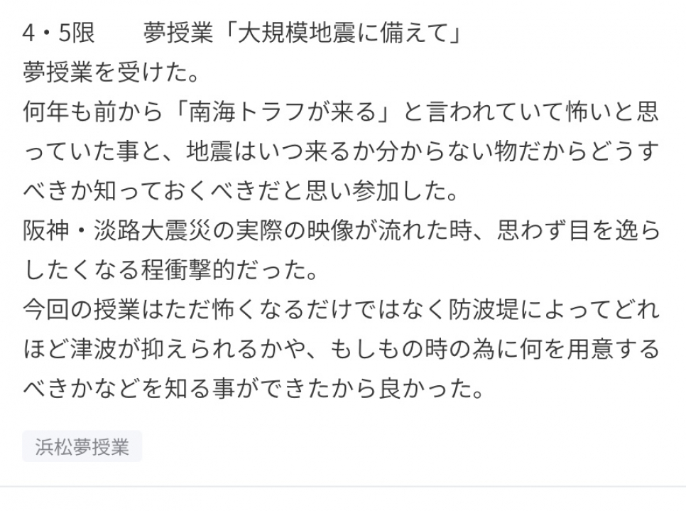 - 夢授業「大規模地震等に備えて~自分の命は自分で守る~」