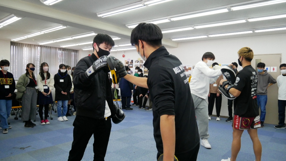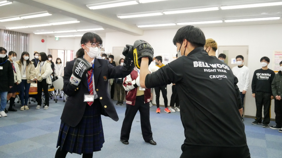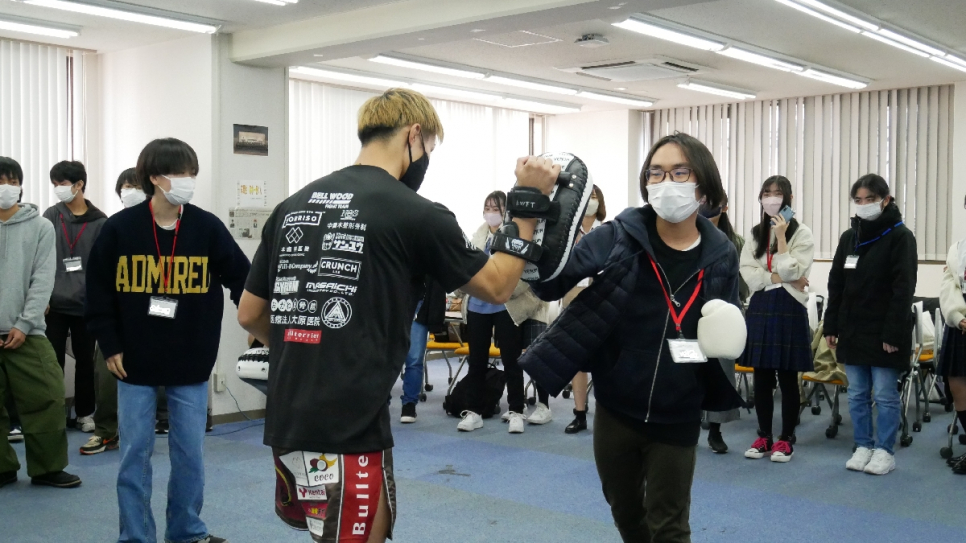 また、ミット打ちの体験もして、生徒たちはとても楽しそうな様子でした!