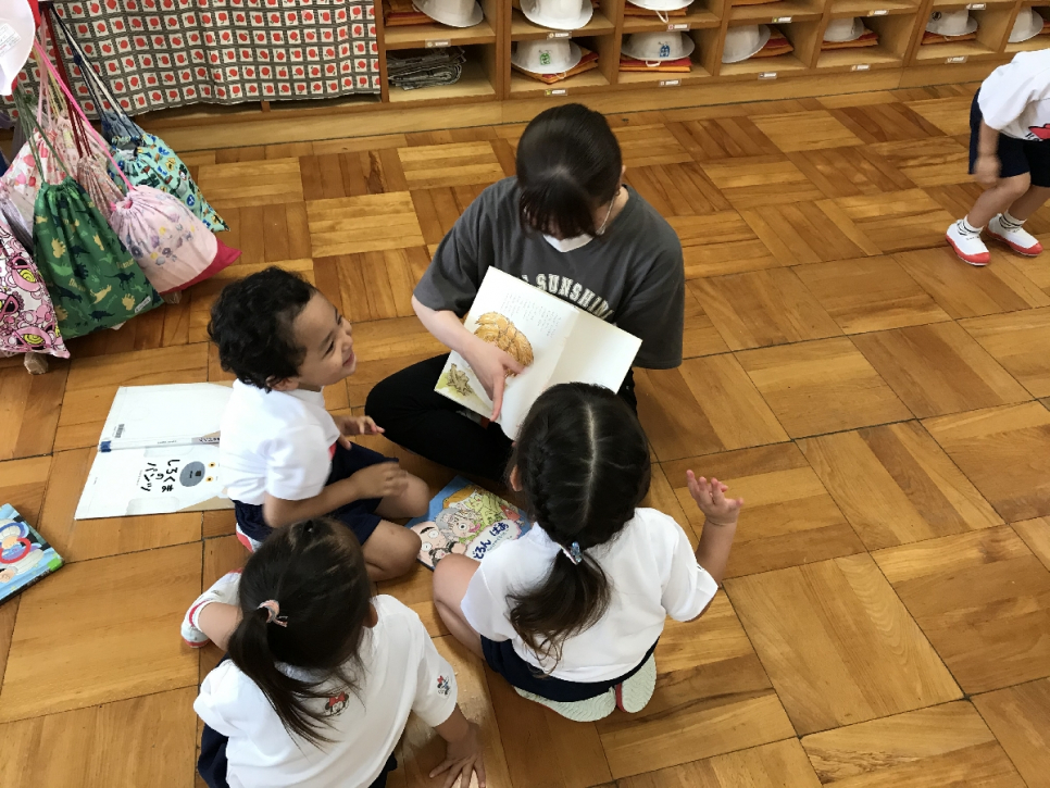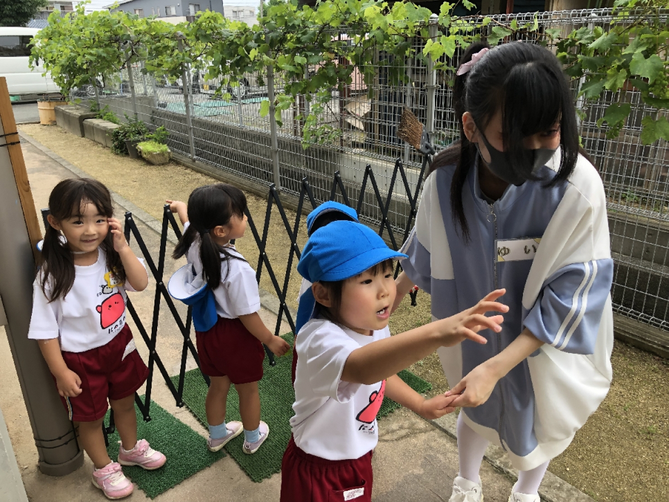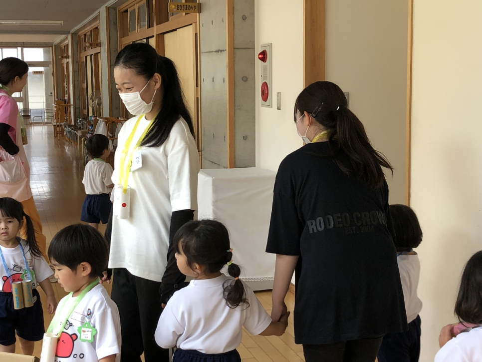 最初は園長先生から①目線を合わせて②クラスに関わった園児全員に話しかける③いけないことは注意するという3つのことをお願いされましたが、皆一生懸命守っているようでした。時間に制限もありますので、なかなか全員に声かけは難しいとは思いますが、頑張っているようでした。