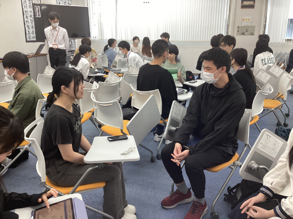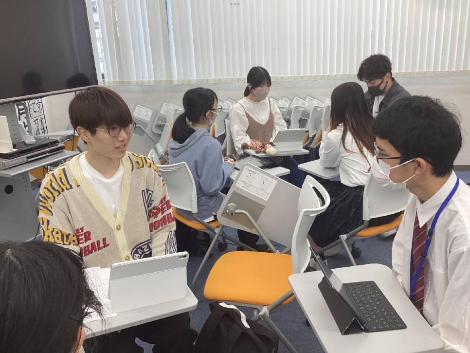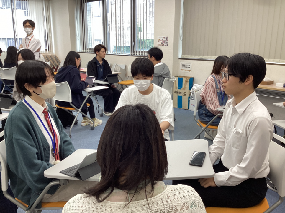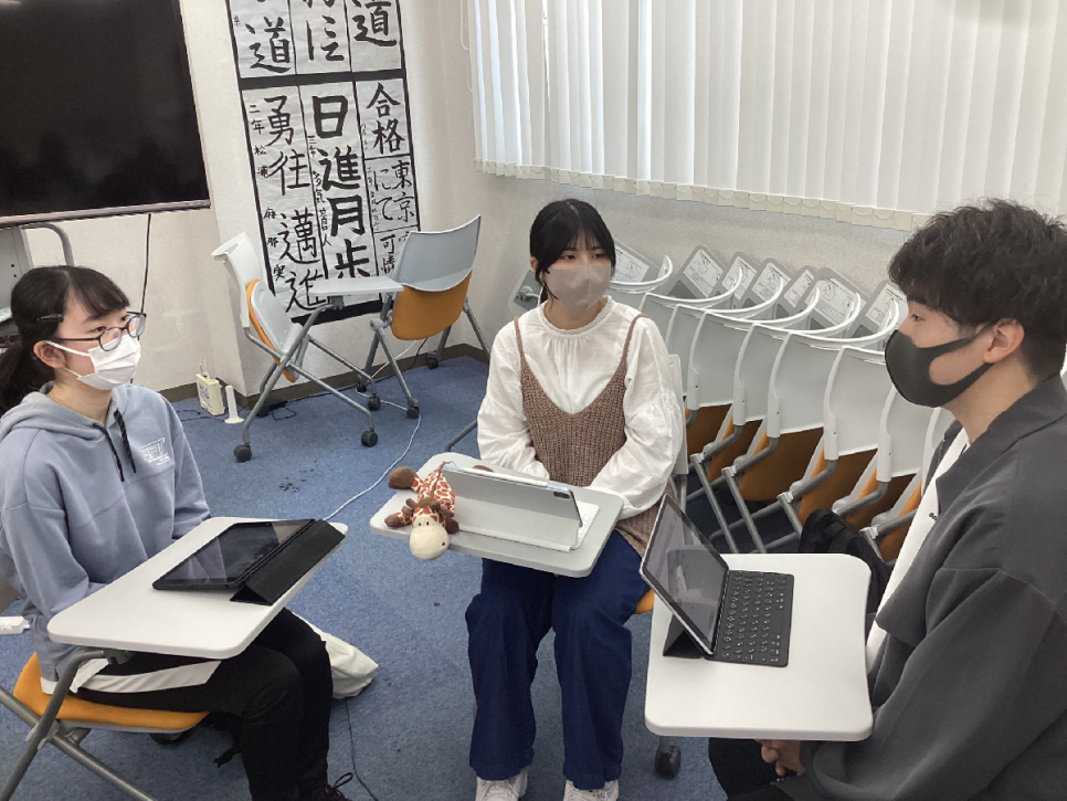 前回は「面接で聞かれやすい質問」について考えたので、今回はその質問に答える練習を生徒同士で行いました!