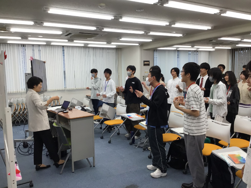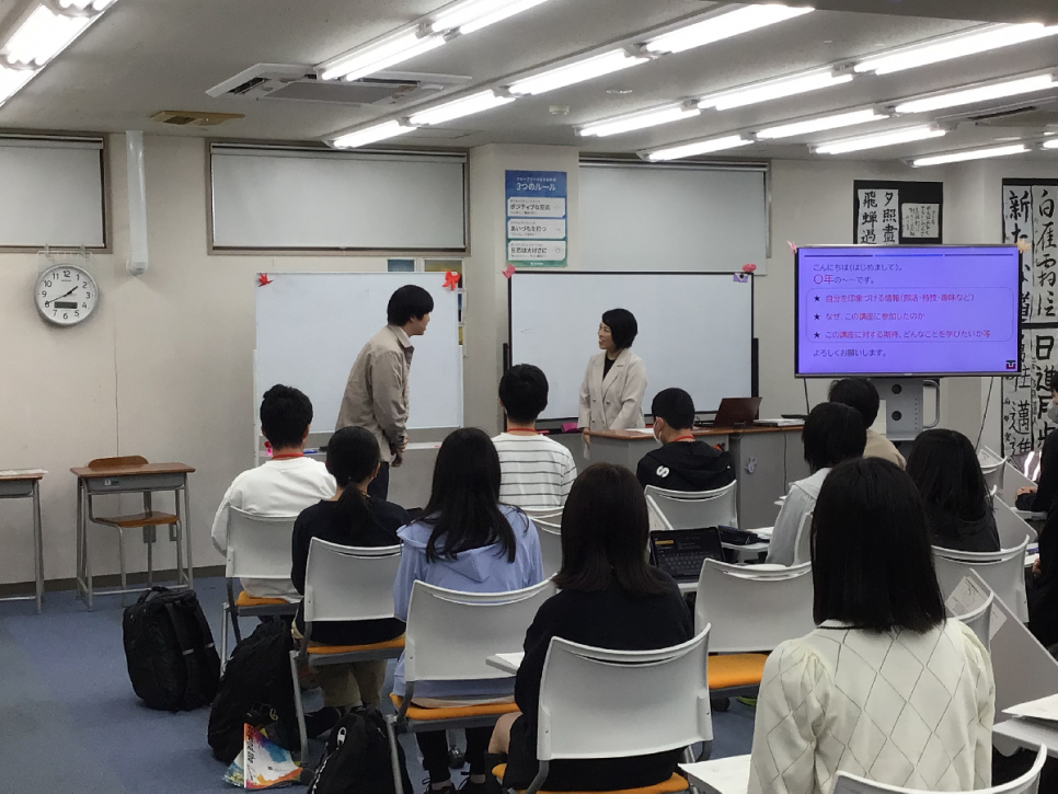 授業では、講師の宮本先生の前職アナウンサーということを活かして、スピーチやプレゼンの基本となる考え方やコミュニケーションの目的に触れながら、滑舌の練習など参加した生徒との双方向での授業を行ってくださいました。