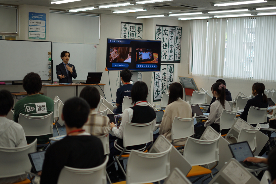 第一学院高等学校では、地域とのつながりを大切にした「コミュニティ共育」の一環として、「夢授業」を実施しています。今回はその取り組みの一つとして、静岡市にある専門学校「プロスペラ学院ビジネス専門学校(以下、プロスペラ学院)」の方を浜松キャンパスにお招きし、夢授業を行いました。