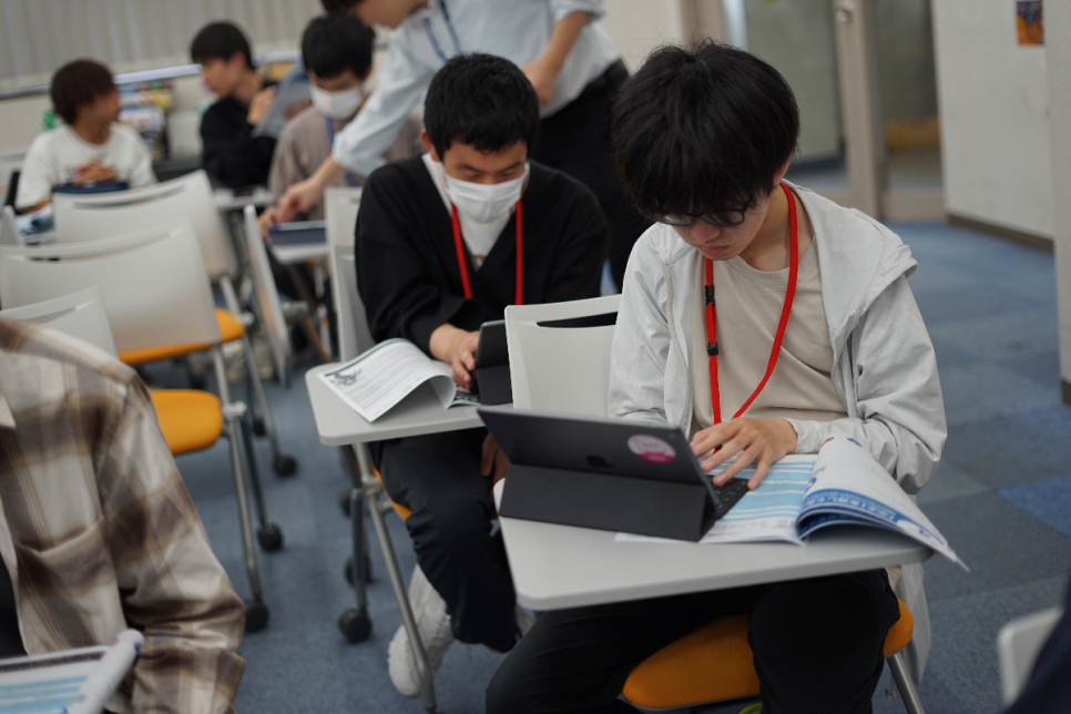 生徒たちは初めてのプログラミングに興味津々で、楽しみながらコードに取り組んでいました。