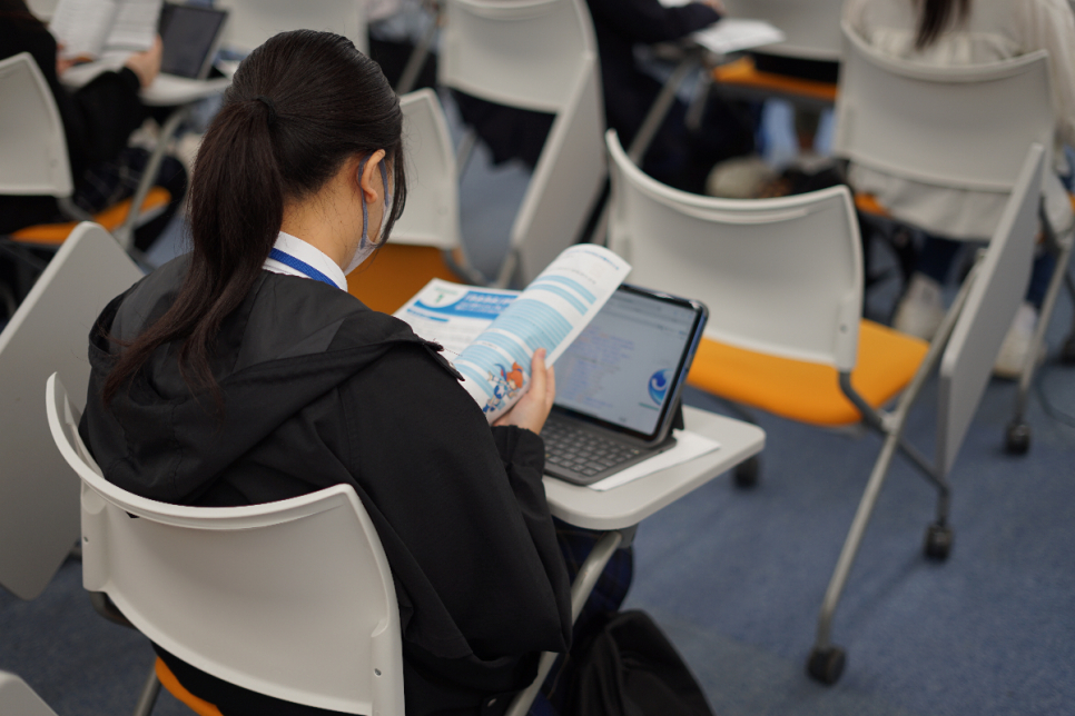 授業の前半では、プロスペラ学院で実際に学べる内容についてご紹介いただき、生徒たちは専門学校での学びに対する理解を深めることができました。