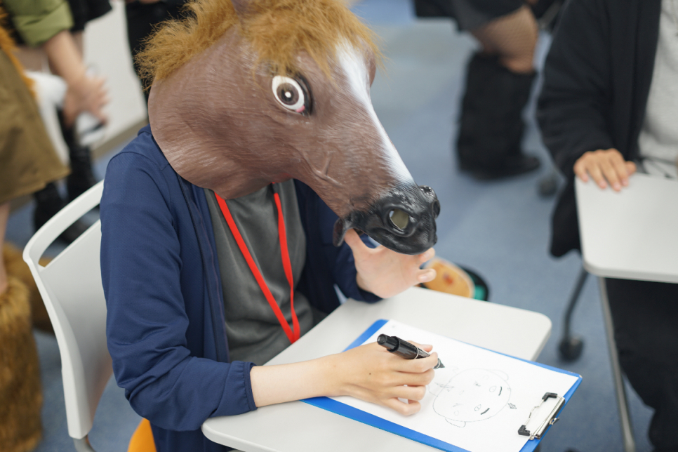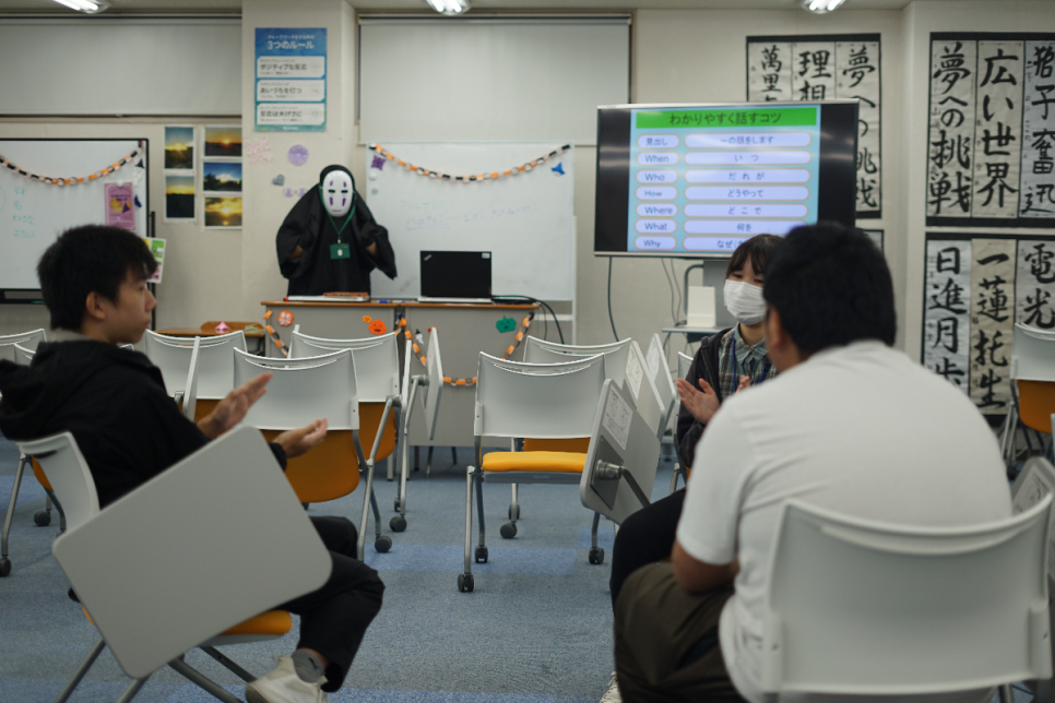 先生たちも仮装して授業を行い、生徒たちはいつもとは違う雰囲気の中で笑顔を見せてくれました。