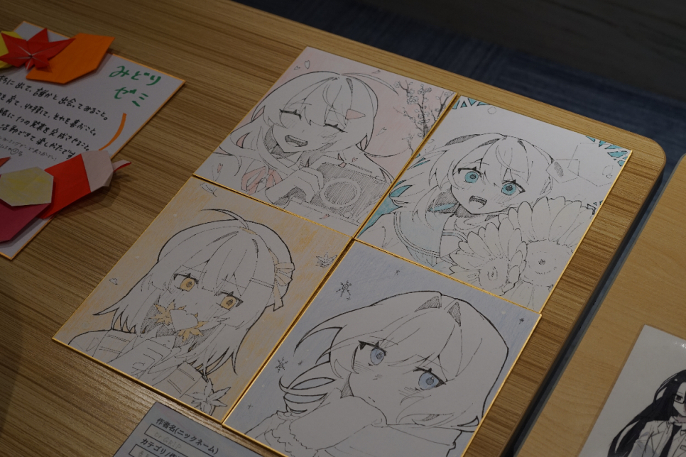 展示スペースには、イラスト作品はもちろん、丁寧に作り込まれたプラモデル、世界観が練り込まれた一次創作小説、さらには個性あふれる痛バッグ(痛バ)まで、本当に幅広いジャンルの作品が並びました。