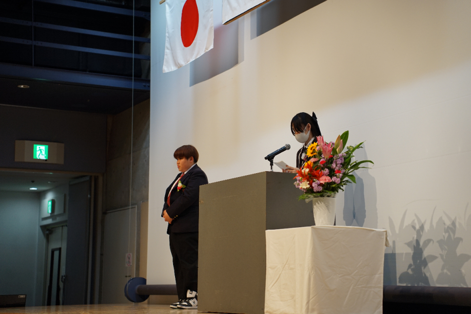 在校生代表の挨拶では、自身が入学当初に感じていた不安や、レクリエーションやサークル活動を通して仲間ができた経験について語られました。