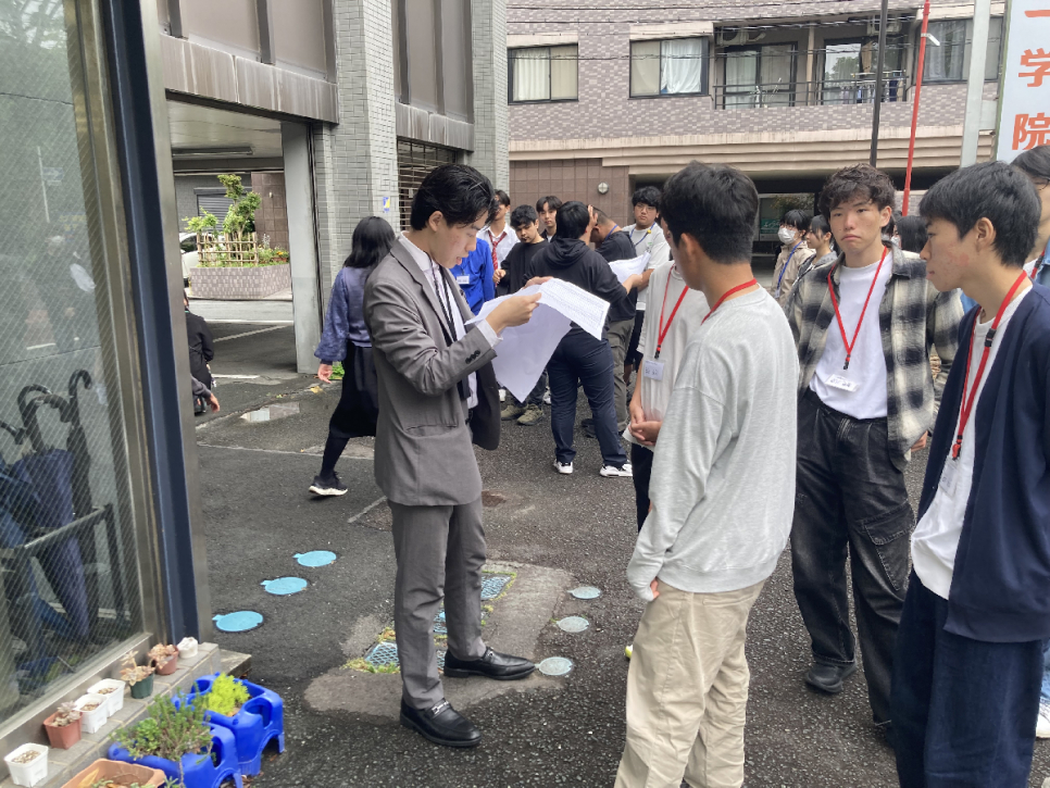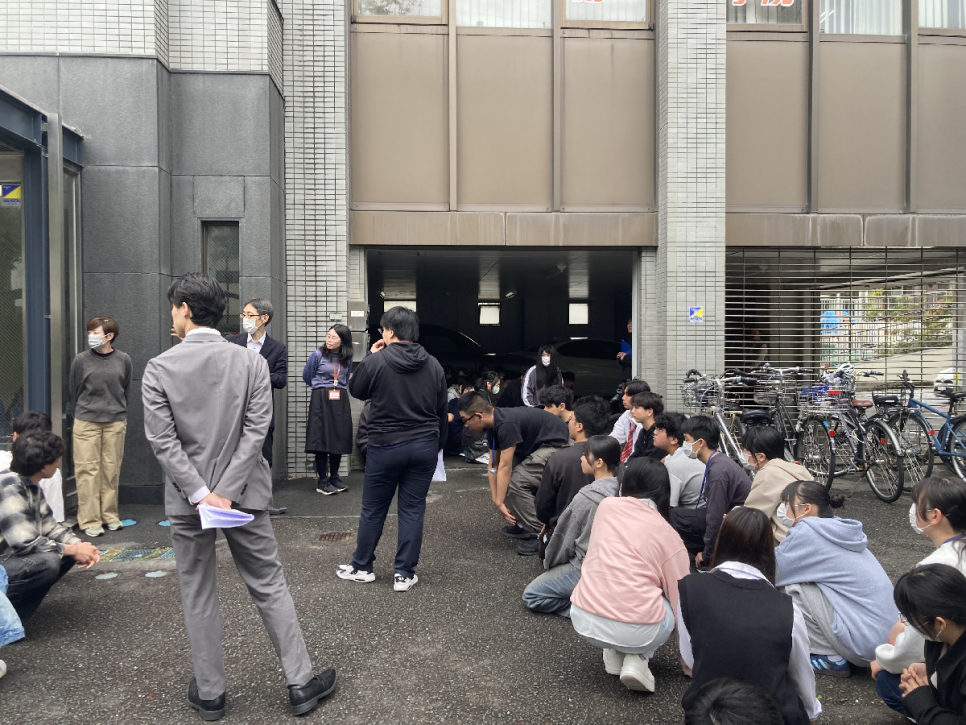 訓練のはじめには、キャンパス長代行の井町先生より、防災訓練に臨む心構えについてのお話がありました。実際の災害を想定し、真剣に取り組むことの大切さを改めて確認しました。