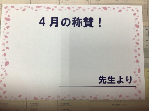 称賛カード!!浜松キャンパスでは、その月に頑張った生徒を称えようと「称賛カード」なるものが存在します。みなさんもご存じかと思いますが、職員室入って、左手の掲示板に貼ってあります。 では、どんな子が「称賛カード」に名前を書かれているのでしょうか。それは、自分だけ... -