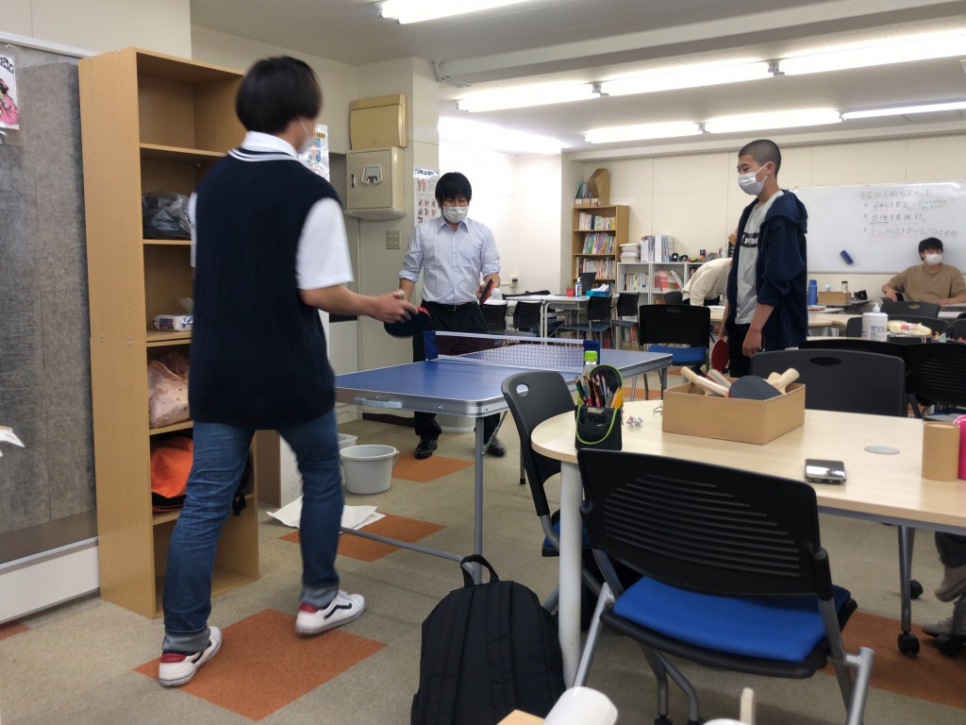 公園に行けない今日は、キャンパス内で卓球が始まりました!!