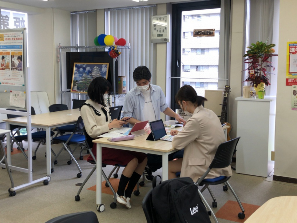 1年生を中心に、2~3人のグループでレポートや中学校の復習を行っています!