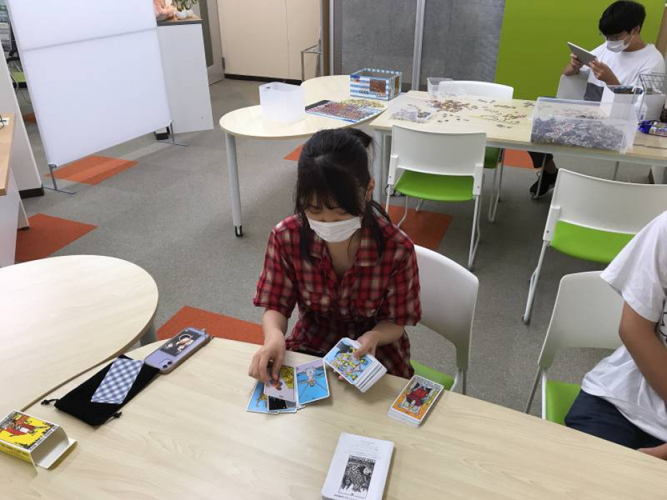 パズルやタロット占いなど、それぞれの趣味に没頭しながら