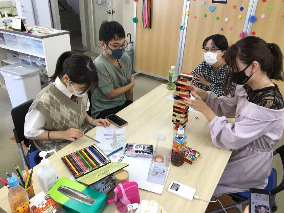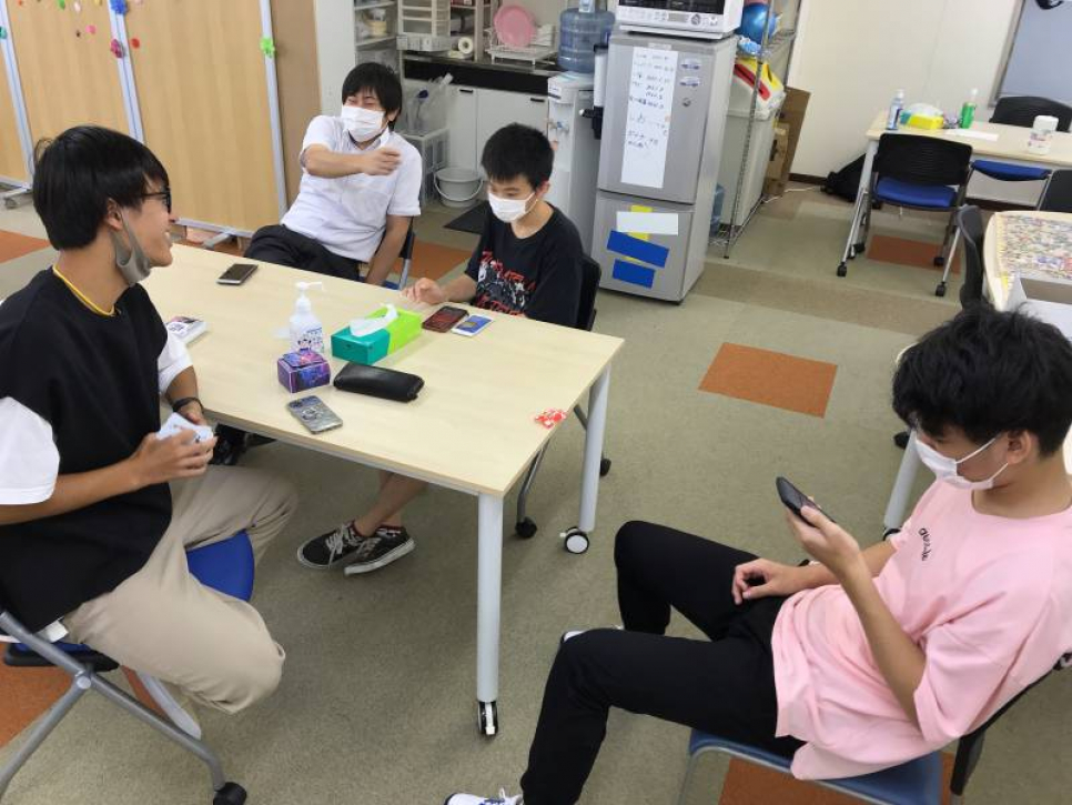 今では、レポート課題を終えた人もいるので、周りとのおしゃべりやカードゲーム、