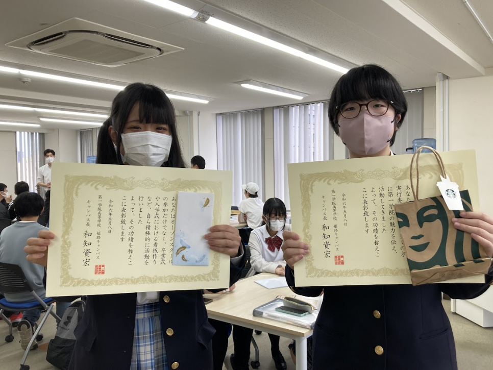 姫路キャンパスでは、節目ごとにキャンパス生の表彰を行っています!