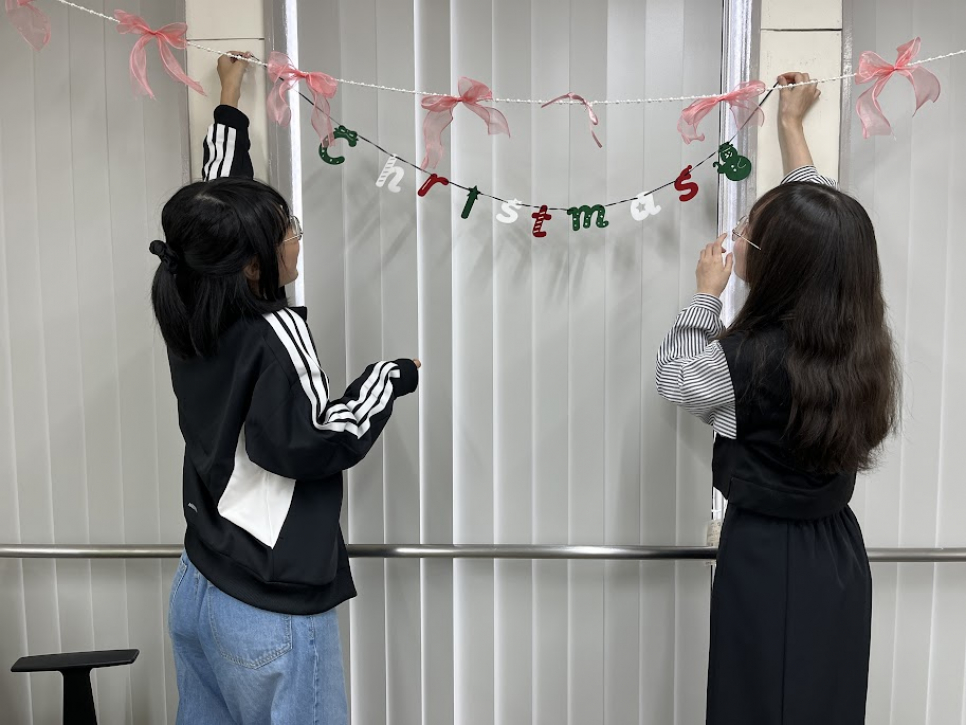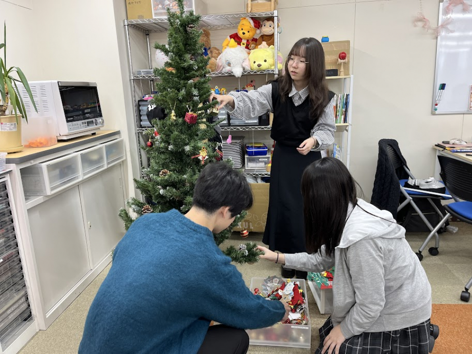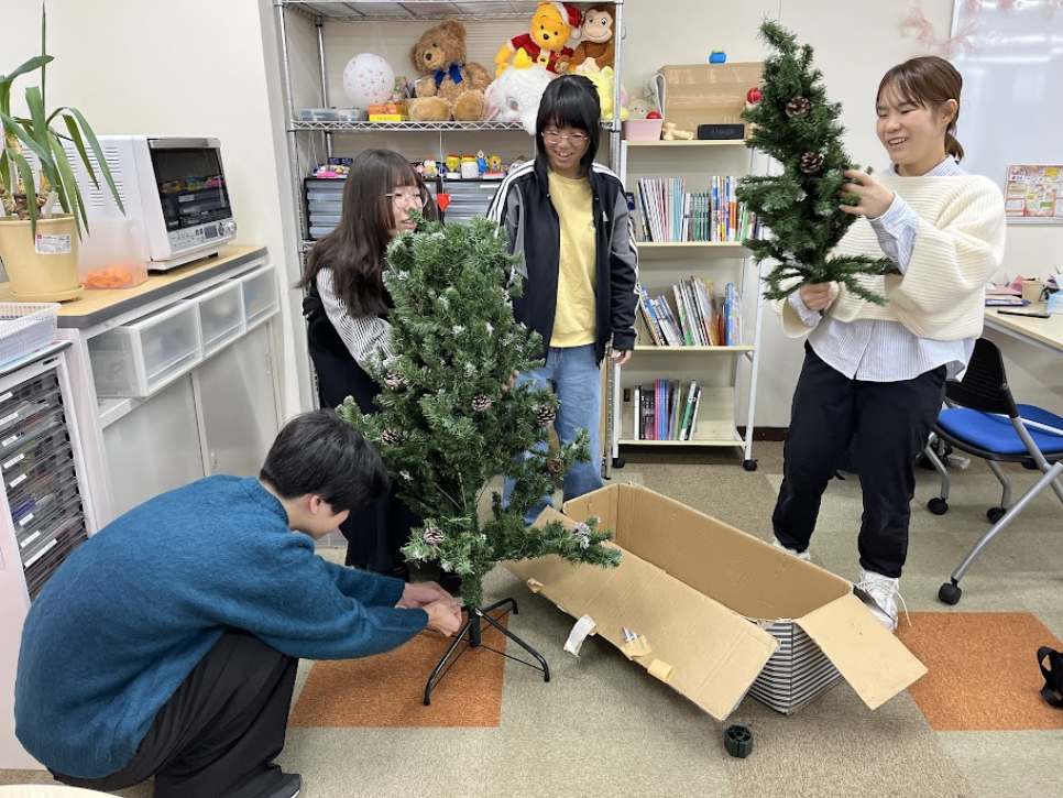 みんなでワイワイ楽しみながら、今年のツリーも完成です\(^o^)/