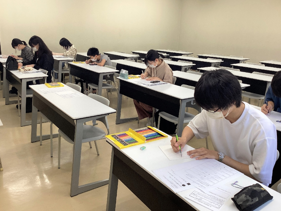 あるものを描くのではなく自分で創造して描くことの難しさを体感しながらも、楽しそうに授業を受けていました。