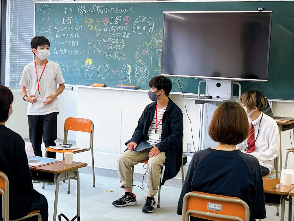 在校生インタビューで、少しでも第一学院の良さが伝わるように考えて話していたり