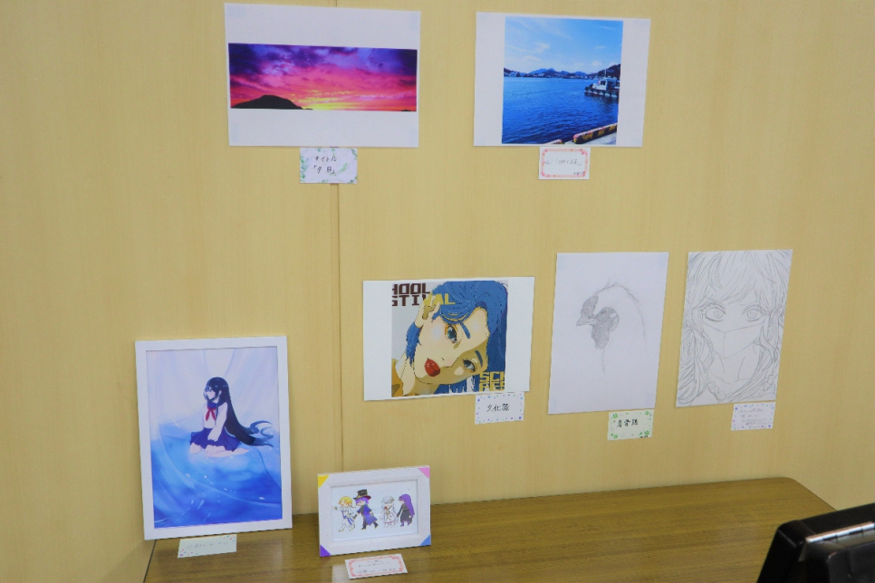 展示コーナーには、みんなの素敵なイラストや写真が☆