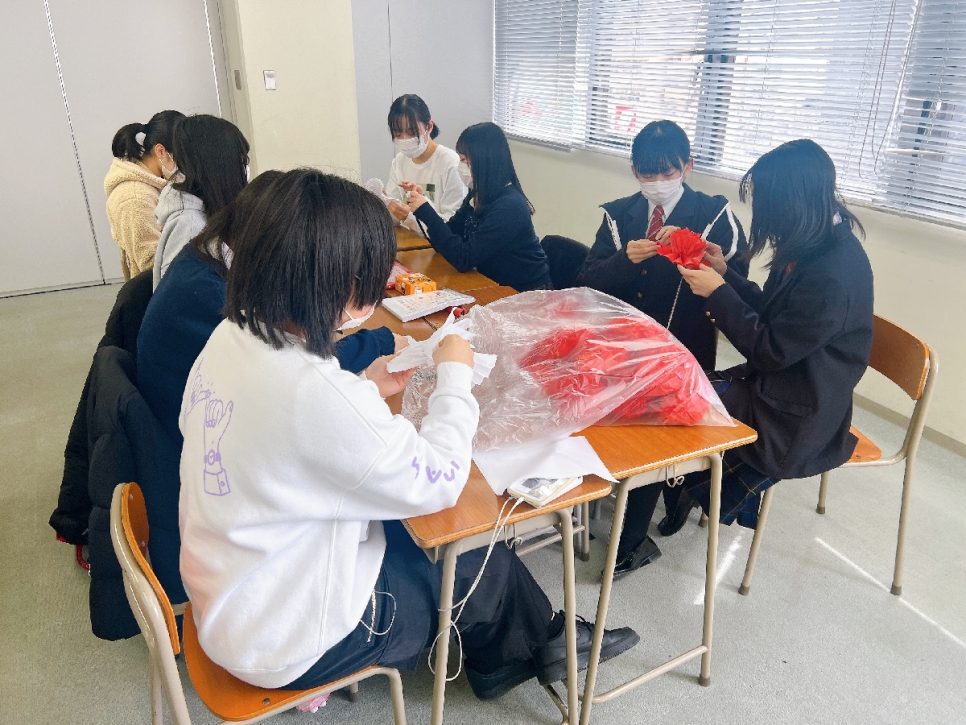 卒業文集や掲示物、飾りつけの作成などの式を迎えるまでの準備、卒業式当日の会場設営、受付・案内や音響、写真撮影に至るまでさまざまな場面で支えてもらいました。