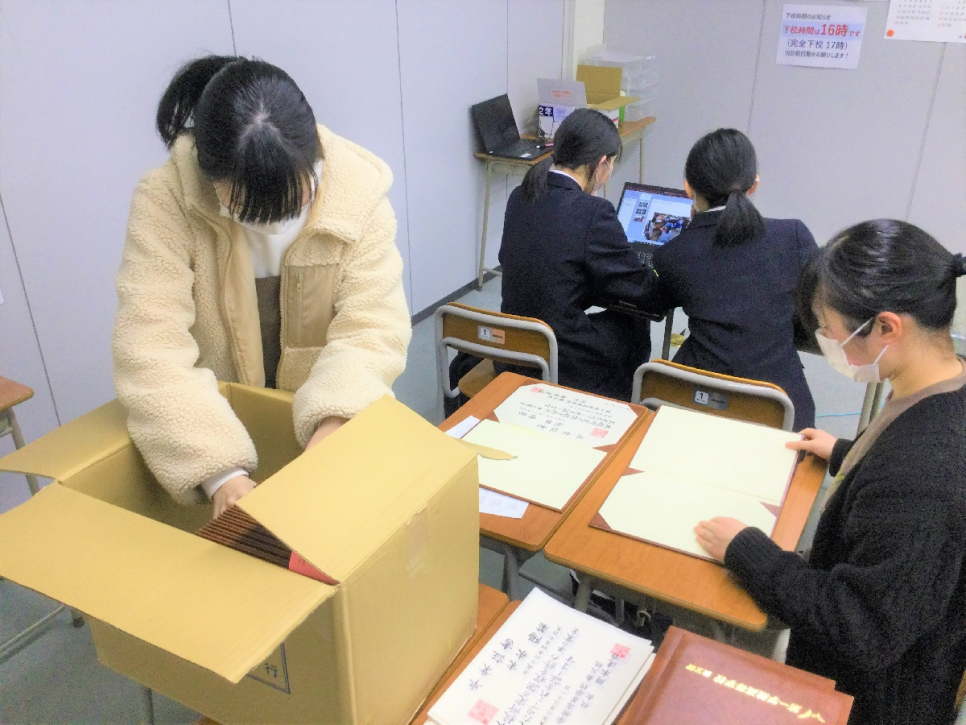 卒業生から保護者へ送る手紙の送付作業