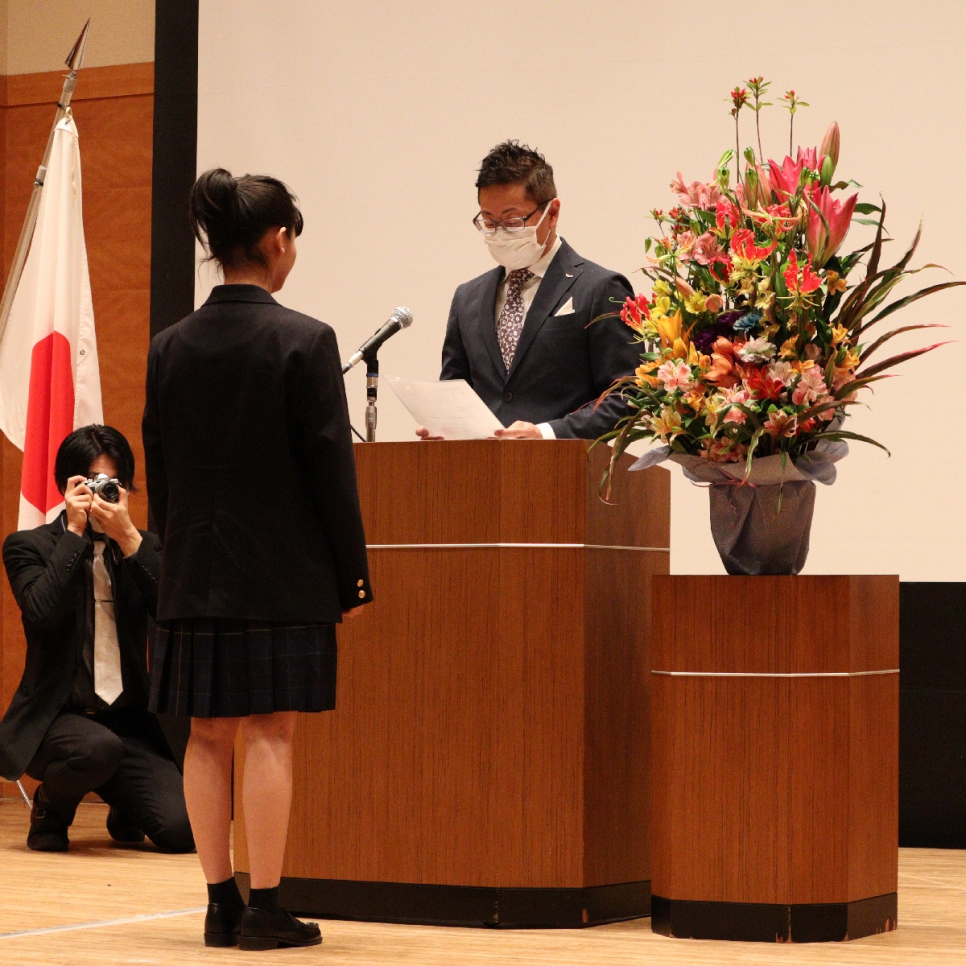 新入生一人ひとりに入学許可証と生徒証を渡し、1年生は緊張した様子を見せつつも、とても良い表情で受け取ってくれました。