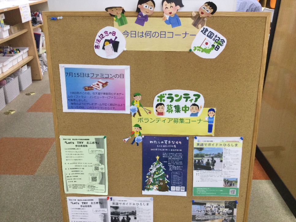 様々なボランティアに関する情報の掲示をしているボードが目の前に