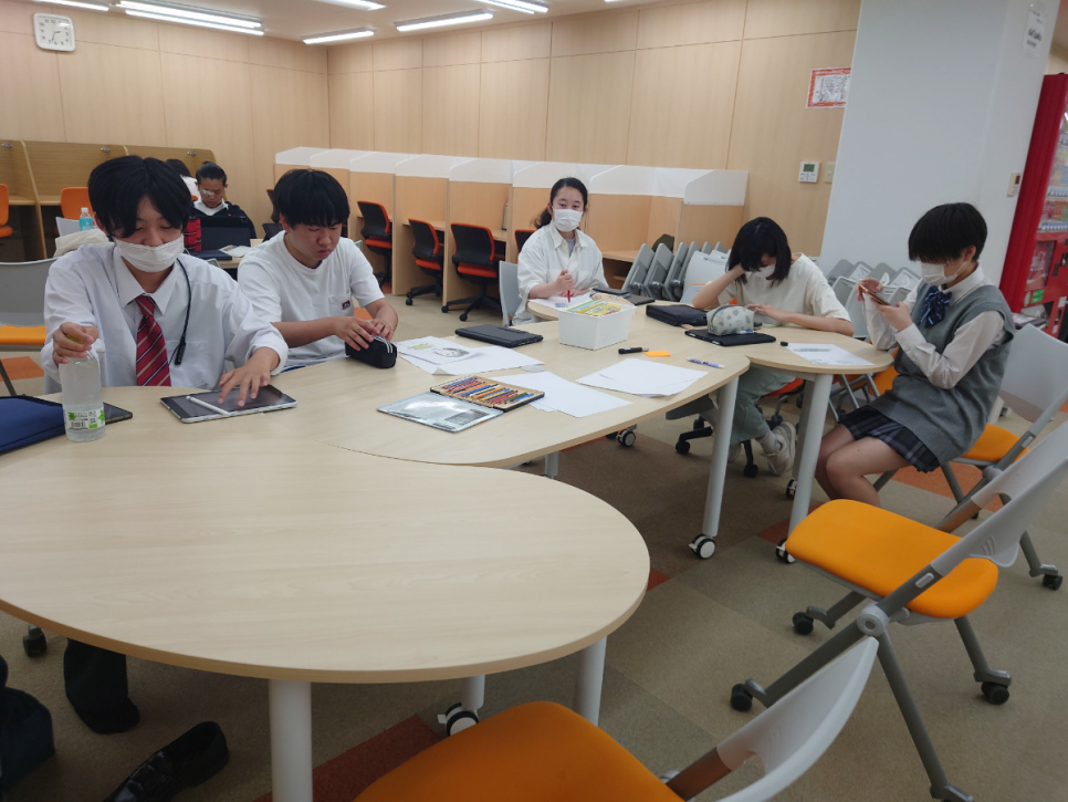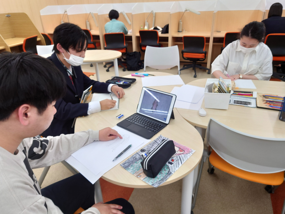 鉛筆で描く生徒もいれば、ペンや筆、デジタルで描く生徒もいます(∩´∀`)∩