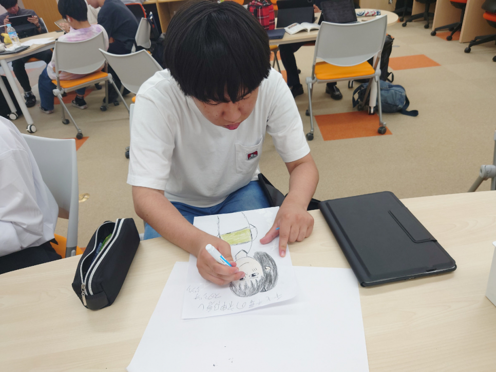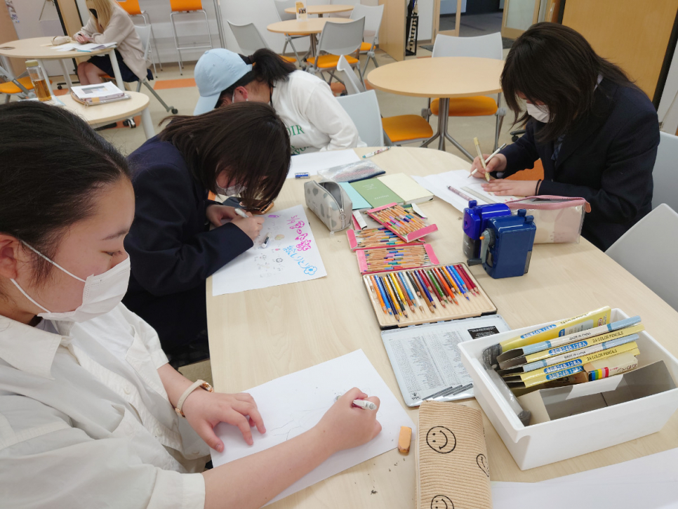 イラストのお題を決めて、みんなで描いてみたり、フットサルの大会の応援旗を描いてみたり~