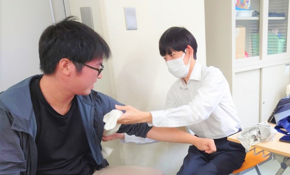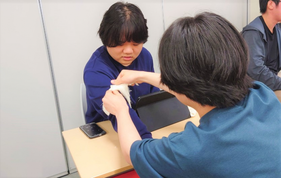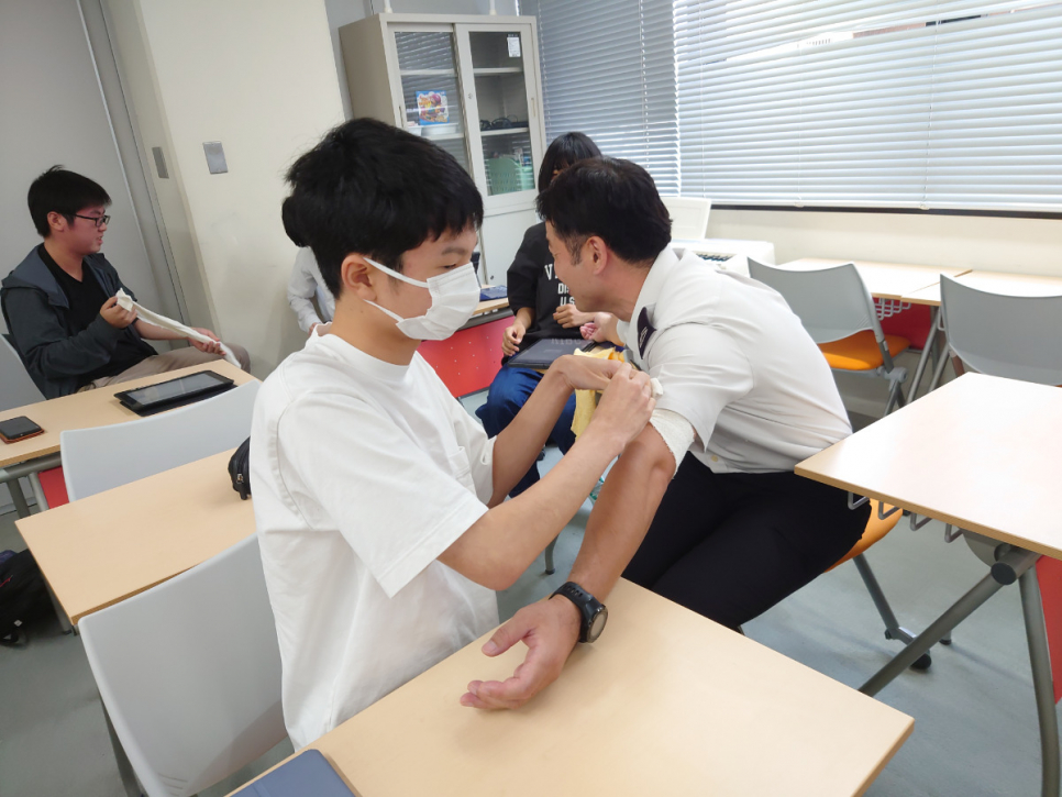 ペアになり、タオルを使いながら止血にも挑戦!