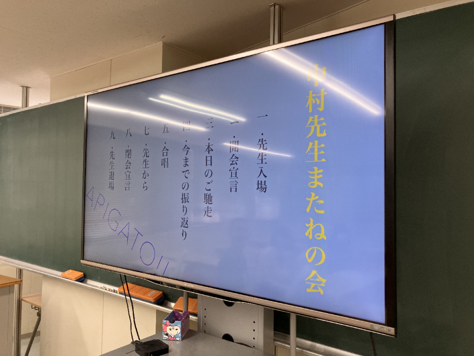 中村先生がベース福山に異動が決まったので、音楽部にて、中村先生へまたねの会を行いました(*'▽')