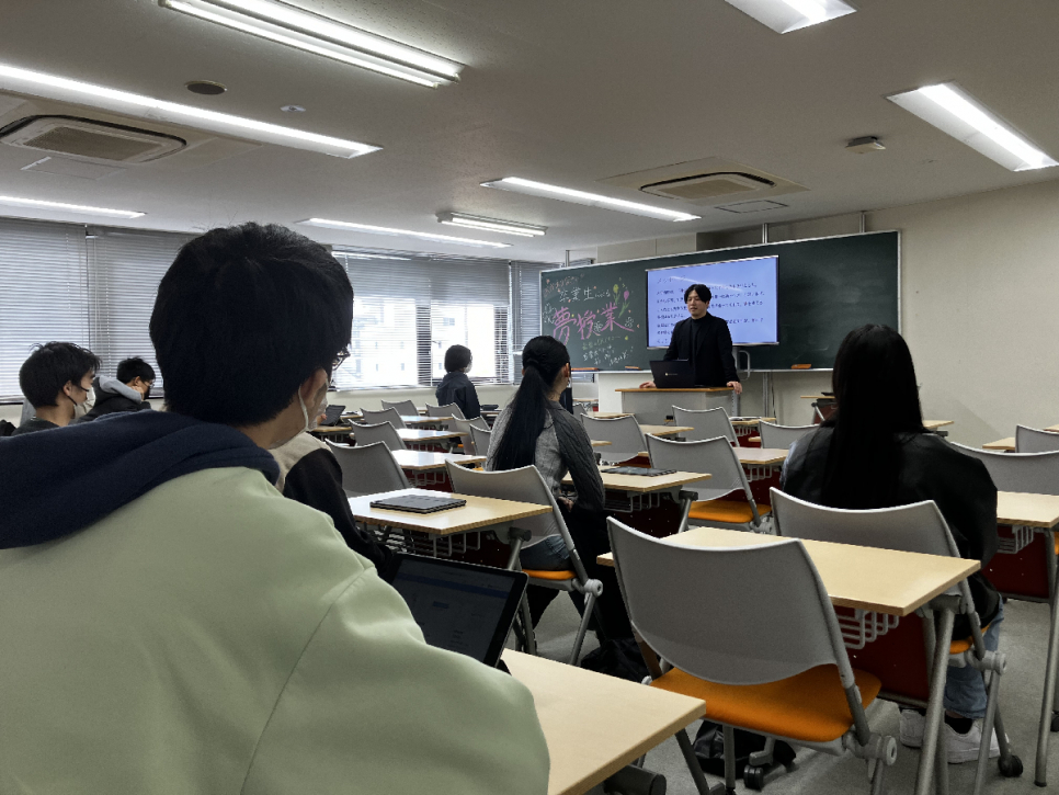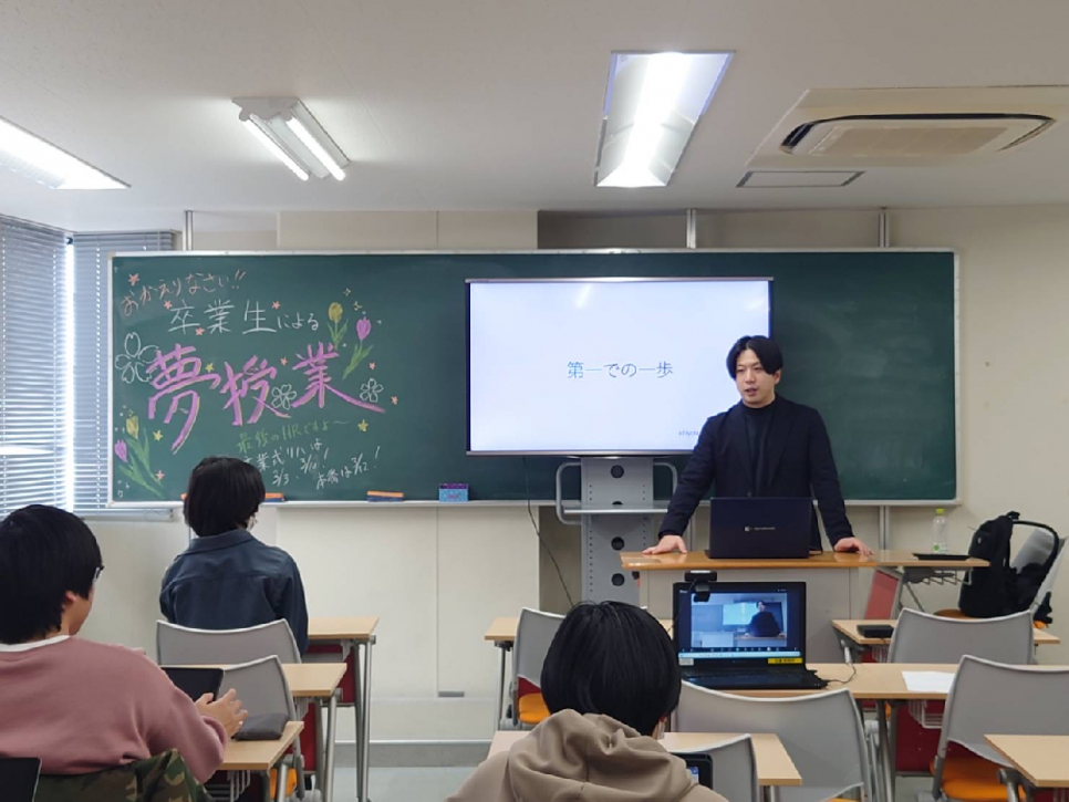 卒業生で現在は、起業家の松本和也さんに来校していただき、