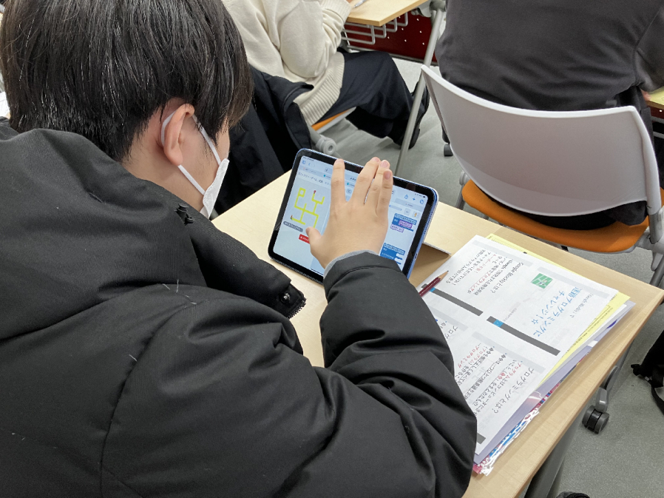 *プログラミングのゲームを体験中、複雑な動作が絡むとうまく進まなくて、難しかった。おおまかなプログラミングの構成を理解することが出来て良かった。