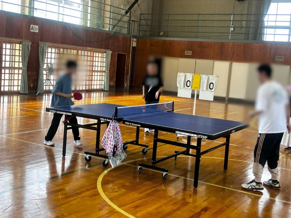 暑い中でしたが、水分補給などもしっかりとおこないながら、卓球・バドミントンなど、皆が思い思いのスポーツを行いながら、楽しみました。