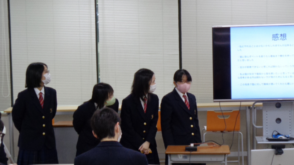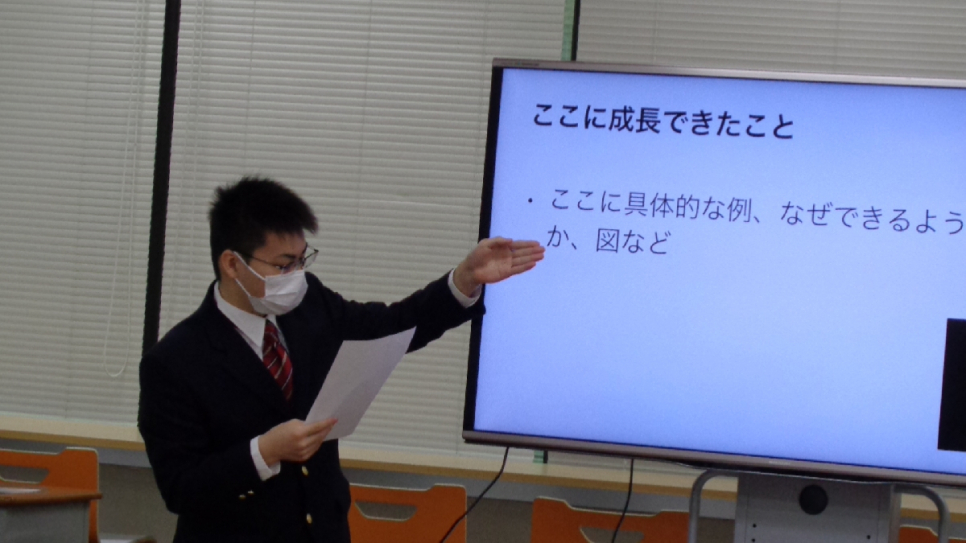 ・展示は前回しましたが発表は初めてだったのでとても緊張しました。 練習よりはぎこちなくなっていたと思いますが、最後までやり遂げることが出来ました。 堂々と発表出来ている人はすごいと思ったので参考にしたいです。(1年生 男子)