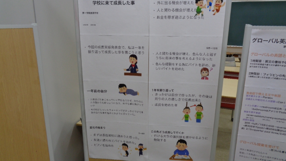 ・今回の成長実感発表会で自分にも生かせる学びが沢山あったのでよかった。 次回その学びが生かせるといいなと思う。(2年生 女子)